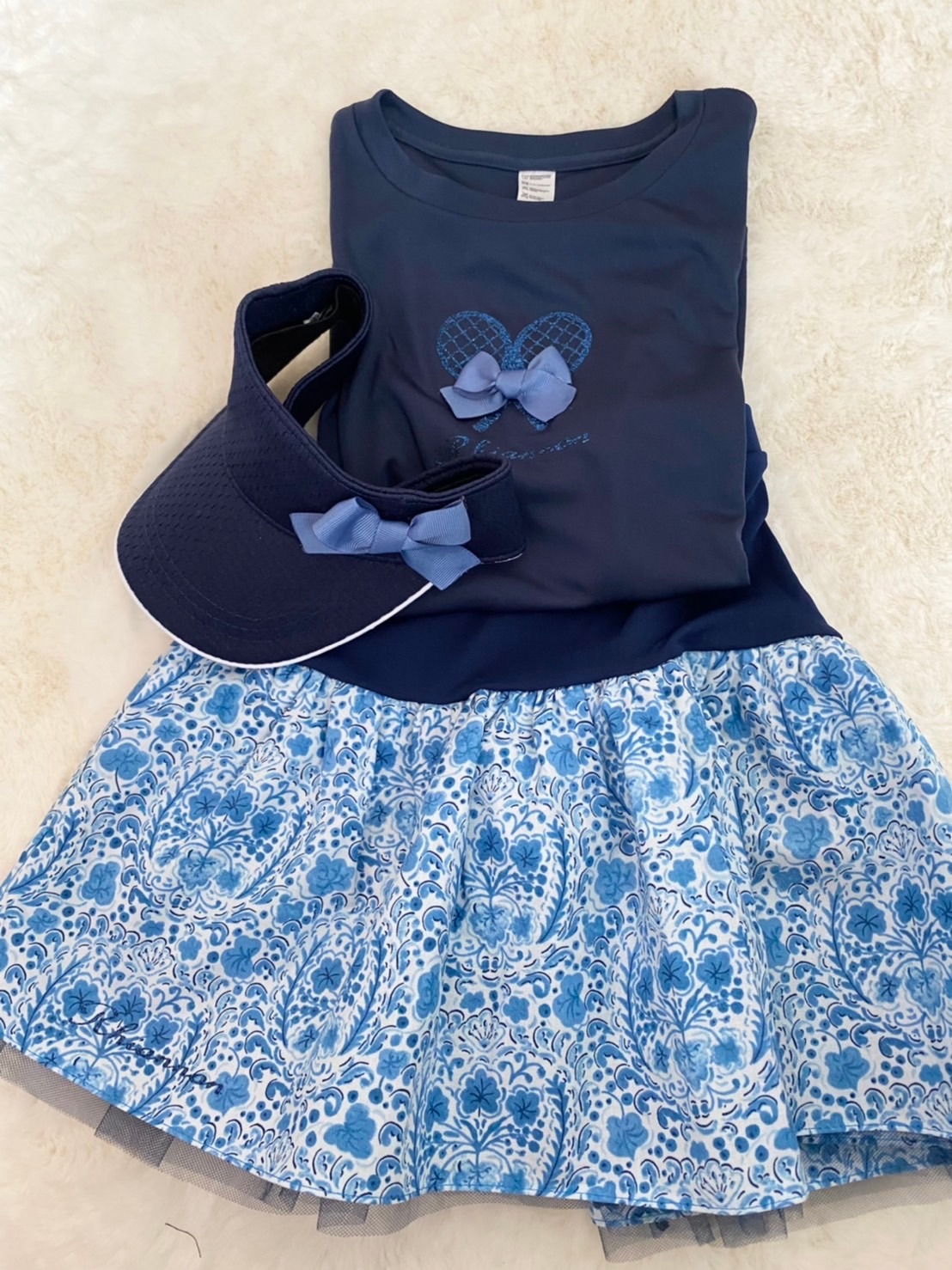 ブルーフラワーのコットン生地の内側にネイビーシフォンが重ねてあります。