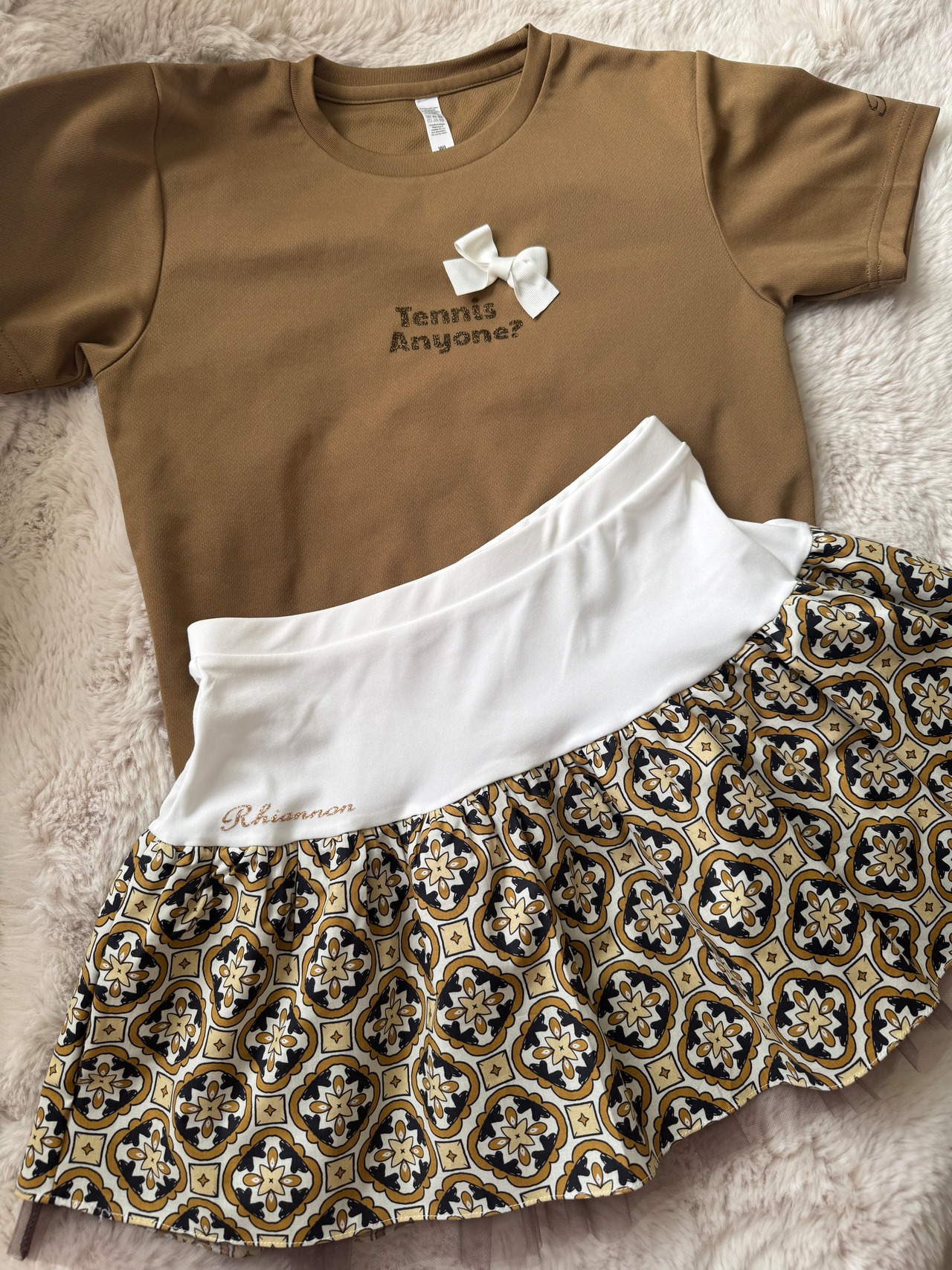 ミックスTシャツ キャメル TennisAnyone? 25ミリホワイトリボン