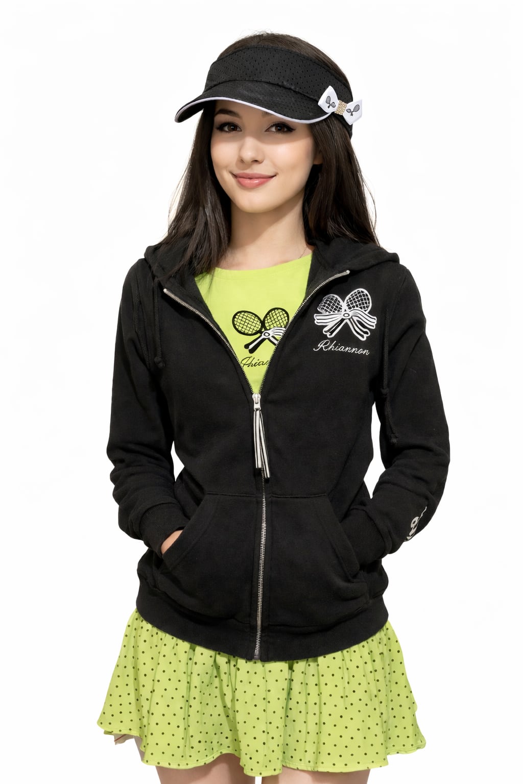 ✨プレミアムライン【スコート】インポート生地ライムブラックドットシフォンスコート PLS04DLM